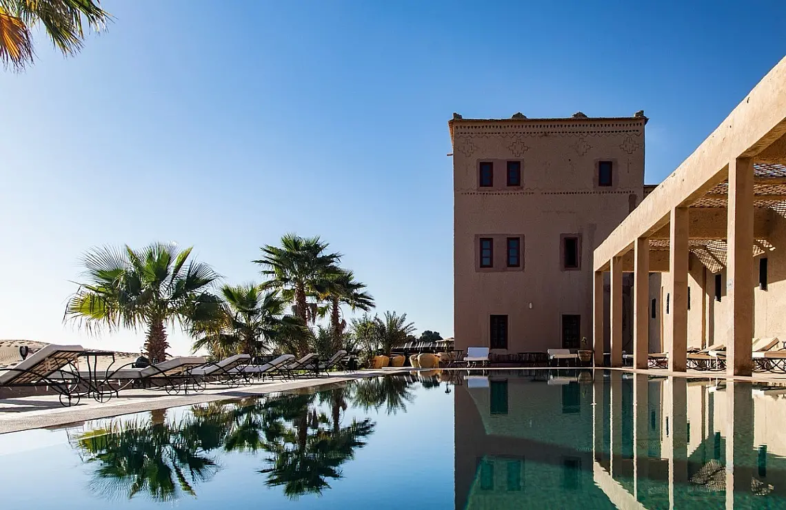 Flights from the UK typically fly into Marrakech. From there, you can take a domestic flight to Errachidia or opt for a scenic 7-hour drive to Merzouga. Many tour companies also offer transport packages from Marrakech to Merzouga.